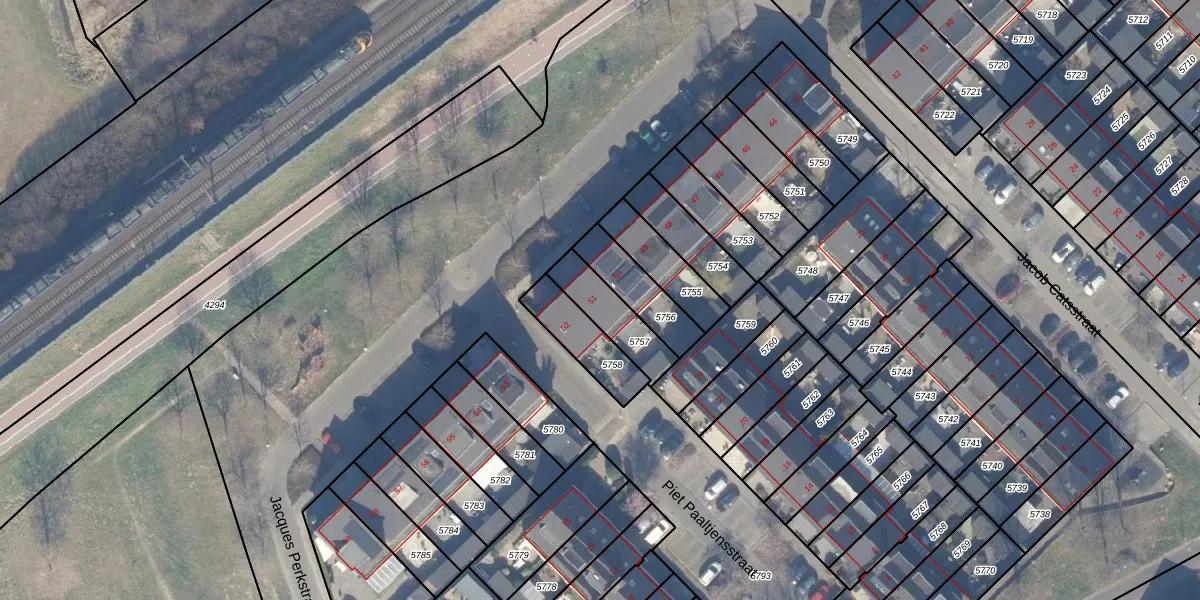 Het perceel waarop Vondelstraat 51 staat heeft een oppervlakte van 156 m². Dit is een middelgroot perceel. De perceeloppervlakte wordt geregistreerd door het Kadaster. Gedetailleerde informatie over de maten van dit perceel kunt u vinden in het rapport Kadastrale kaart met maatvoering van Vondelstraat 51.
