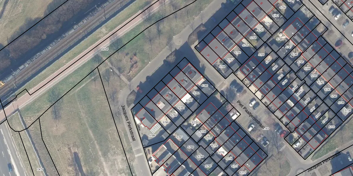 Het adres ligt op het perceel AMR04-Q-5782, dat zich in de kadastrale gemeente Almere bevindt. Het perceel is kleiner dan gemiddeld in Almere. Het perceel is 155 m² groot, terwijl het gemiddelde ligt op 3327,75 m². De grootste perceeloppervlakte in de kadastrale gemeente is 32,12 km². De kleinste oppervlakte bedraagt 0 m². Dit is het enige adres dat aanwezig is op het perceel. De huidige grenzen van het perceel zijn digitaal in de Basisregistratie Kadaster (BRK) geregistreerd op 10-09-2001.