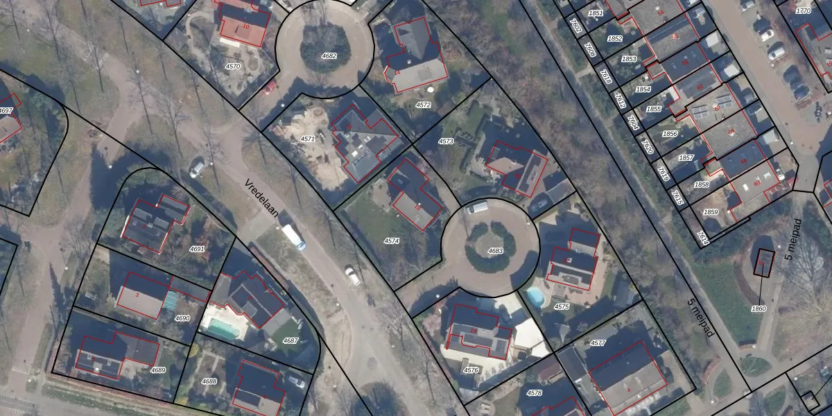 Het perceel waarop Vredelaan 18 staat heeft een oppervlakte van 588 m². Dit is een groot perceel. De perceeloppervlakte wordt geregistreerd door het Kadaster. Gedetailleerde informatie over de maten van dit perceel kunt u vinden in het rapport Kadastrale kaart met maatvoering van Vredelaan 18.