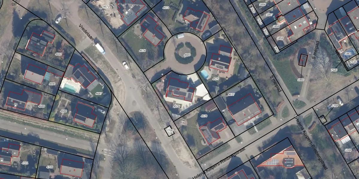 Het perceel waarop Vredelaan 24 staat heeft een oppervlakte van 565 m². Dit is een groot perceel. De perceeloppervlakte wordt geregistreerd door het Kadaster. Gedetailleerde informatie over de maten van dit perceel kunt u vinden in het rapport Kadastrale kaart met maatvoering van Vredelaan 24.