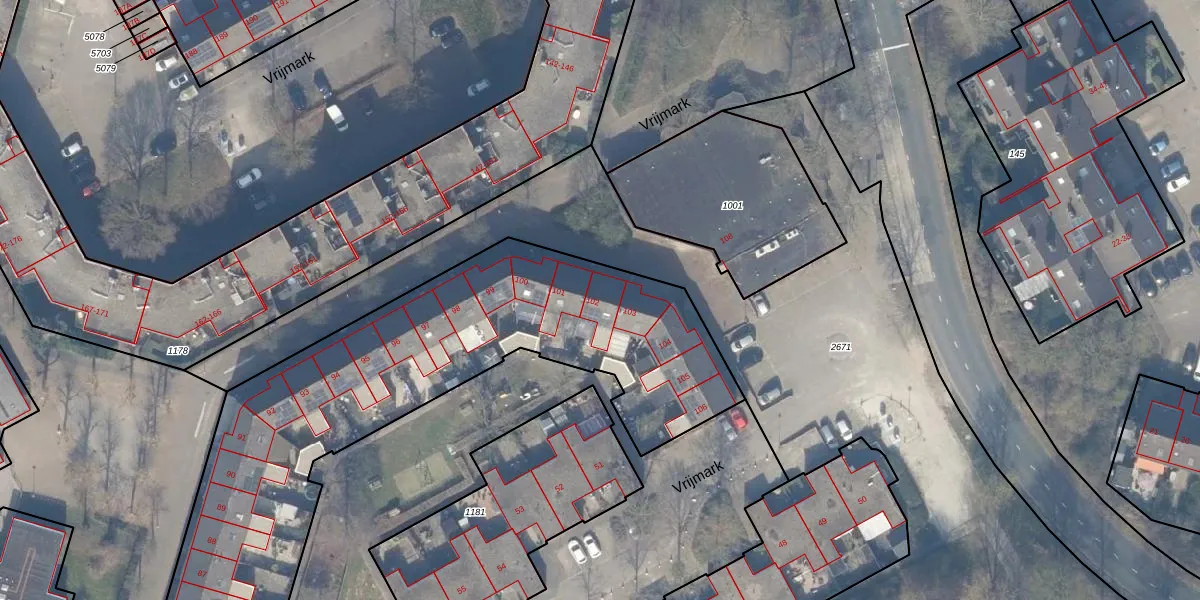 Het perceel waarop Vrijmark 102 staat heeft een oppervlakte van 5666 m². Dit is een zeer groot perceel. De perceeloppervlakte wordt geregistreerd door het Kadaster. Gedetailleerde informatie over de maten van dit perceel kunt u vinden in het rapport Kadastrale kaart met maatvoering van Vrijmark 102.