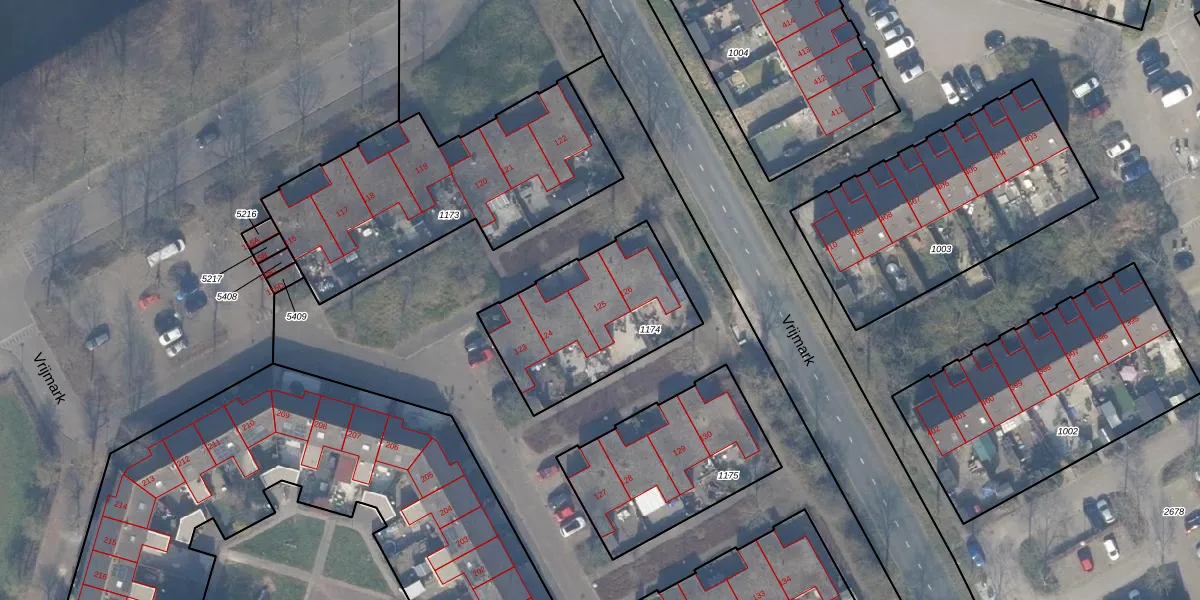 Het perceel waarop Vrijmark 125 staat heeft een oppervlakte van 624 m². Dit is een groot perceel. De perceeloppervlakte wordt geregistreerd door het Kadaster. Gedetailleerde informatie over de maten van dit perceel kunt u vinden in het rapport Kadastrale kaart met maatvoering van Vrijmark 125.