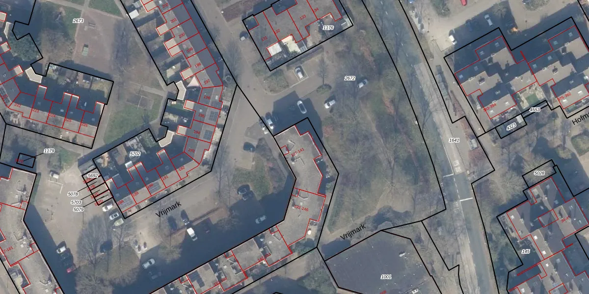 Het perceel waarop Vrijmark 138 staat heeft een oppervlakte van 2534 m². Dit is een zeer groot perceel. De perceeloppervlakte wordt geregistreerd door het Kadaster. Gedetailleerde informatie over de maten van dit perceel kunt u vinden in het rapport Kadastrale kaart met maatvoering van Vrijmark 138.
