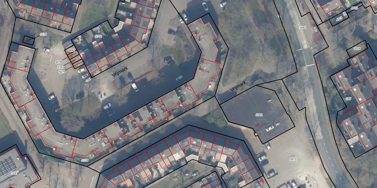 Het perceel waarop Vrijmark 149 staat heeft een oppervlakte van 2534 m². Dit is een zeer groot perceel. De perceeloppervlakte wordt geregistreerd door het Kadaster. Gedetailleerde informatie over de maten van dit perceel kunt u vinden in het rapport Kadastrale kaart met maatvoering van Vrijmark 149.