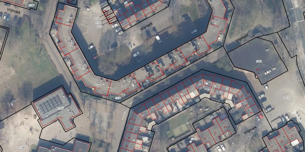Het perceel waarop Vrijmark 160 staat heeft een oppervlakte van 2534 m². Dit is een zeer groot perceel. De perceeloppervlakte wordt geregistreerd door het Kadaster. Gedetailleerde informatie over de maten van dit perceel kunt u vinden in het rapport Kadastrale kaart met maatvoering van Vrijmark 160.