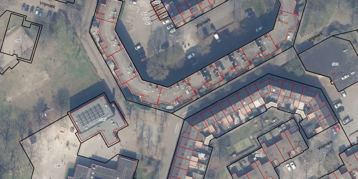 Het perceel waarop Vrijmark 162 staat heeft een oppervlakte van 2534 m². Dit is een zeer groot perceel. De perceeloppervlakte wordt geregistreerd door het Kadaster. Gedetailleerde informatie over de maten van dit perceel kunt u vinden in het rapport Kadastrale kaart met maatvoering van Vrijmark 162.