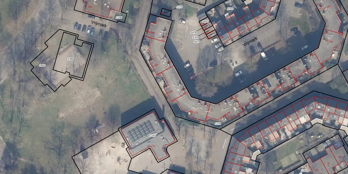 Het perceel waarop Vrijmark 173 staat heeft een oppervlakte van 2534 m². Dit is een zeer groot perceel. De perceeloppervlakte wordt geregistreerd door het Kadaster. Gedetailleerde informatie over de maten van dit perceel kunt u vinden in het rapport Kadastrale kaart met maatvoering van Vrijmark 173.
