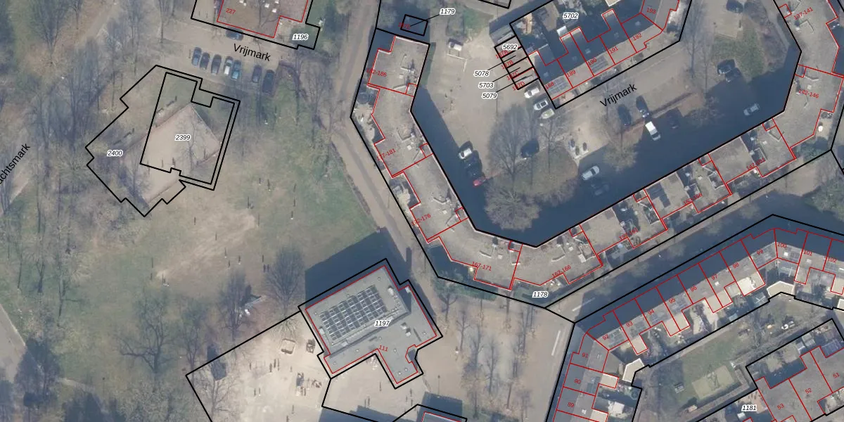 Het perceel waarop Vrijmark 175 staat heeft een oppervlakte van 2534 m². Dit is een zeer groot perceel. De perceeloppervlakte wordt geregistreerd door het Kadaster. Gedetailleerde informatie over de maten van dit perceel kunt u vinden in het rapport Kadastrale kaart met maatvoering van Vrijmark 175.