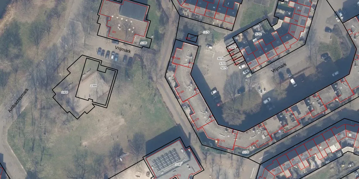 Het perceel waarop Vrijmark 180 staat heeft een oppervlakte van 2534 m². Dit is een zeer groot perceel. De perceeloppervlakte wordt geregistreerd door het Kadaster. Gedetailleerde informatie over de maten van dit perceel kunt u vinden in het rapport Kadastrale kaart met maatvoering van Vrijmark 180.