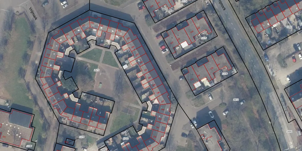 Het perceel waarop Vrijmark 200 staat heeft een oppervlakte van 4653 m². Dit is een zeer groot perceel. De perceeloppervlakte wordt geregistreerd door het Kadaster. Gedetailleerde informatie over de maten van dit perceel kunt u vinden in het rapport Kadastrale kaart met maatvoering van Vrijmark 200.