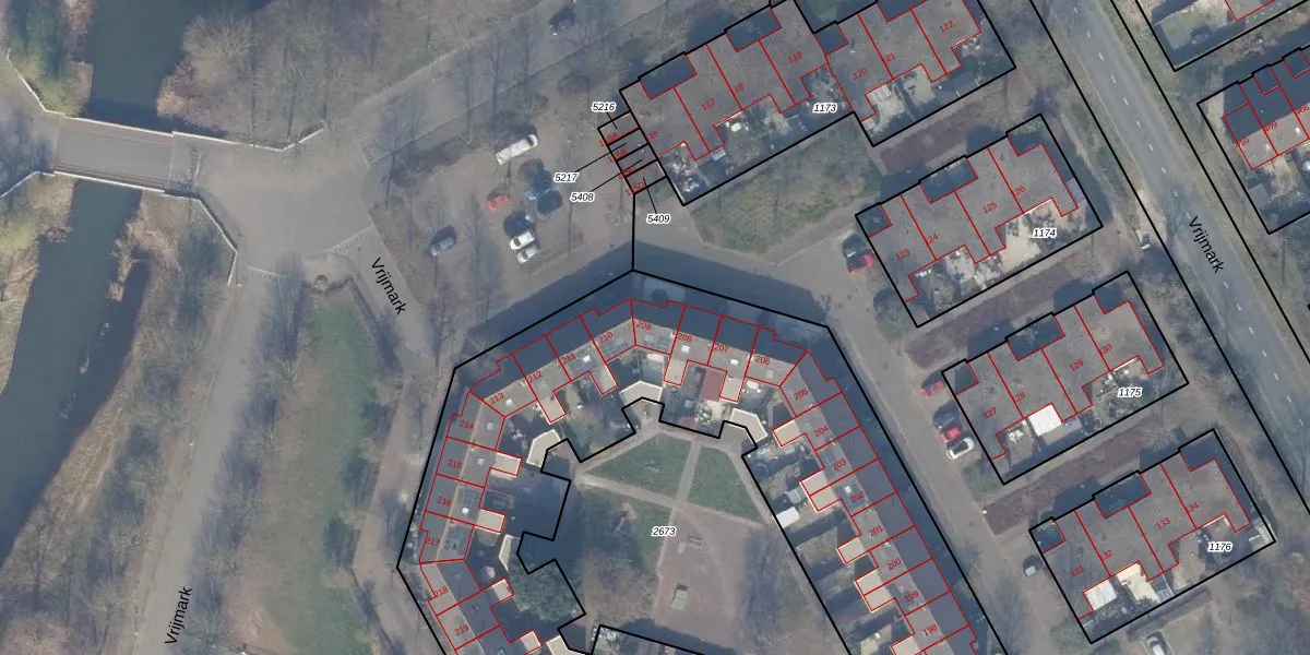 Het perceel waarop Vrijmark 209 staat heeft een oppervlakte van 4653 m². Dit is een zeer groot perceel. De perceeloppervlakte wordt geregistreerd door het Kadaster. Gedetailleerde informatie over de maten van dit perceel kunt u vinden in het rapport Kadastrale kaart met maatvoering van Vrijmark 209.