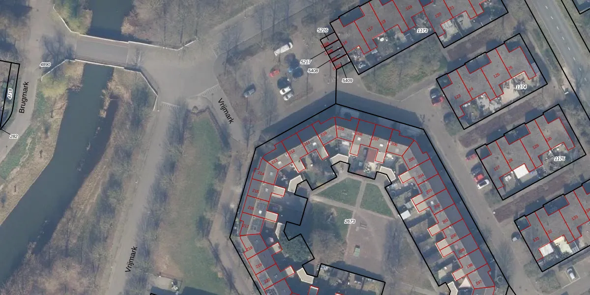 Het perceel waarop Vrijmark 212 staat heeft een oppervlakte van 4653 m². Dit is een zeer groot perceel. De perceeloppervlakte wordt geregistreerd door het Kadaster. Gedetailleerde informatie over de maten van dit perceel kunt u vinden in het rapport Kadastrale kaart met maatvoering van Vrijmark 212.