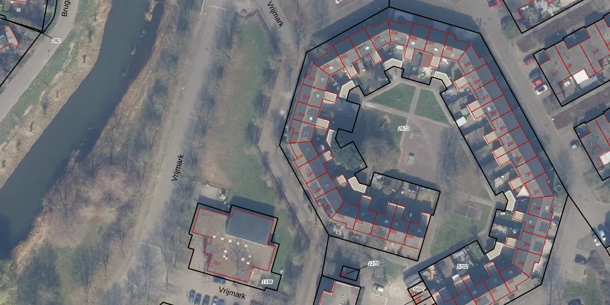 Het perceel waarop Vrijmark 218 staat heeft een oppervlakte van 4653 m². Dit is een zeer groot perceel. De perceeloppervlakte wordt geregistreerd door het Kadaster. Gedetailleerde informatie over de maten van dit perceel kunt u vinden in het rapport Kadastrale kaart met maatvoering van Vrijmark 218.