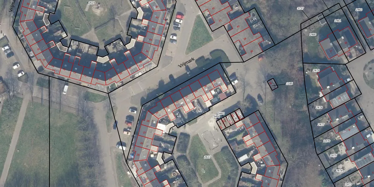 Het perceel waarop Vrijmark 32 staat heeft een oppervlakte van 4212 m². Dit is een zeer groot perceel. De perceeloppervlakte wordt geregistreerd door het Kadaster. Gedetailleerde informatie over de maten van dit perceel kunt u vinden in het rapport Kadastrale kaart met maatvoering van Vrijmark 32.