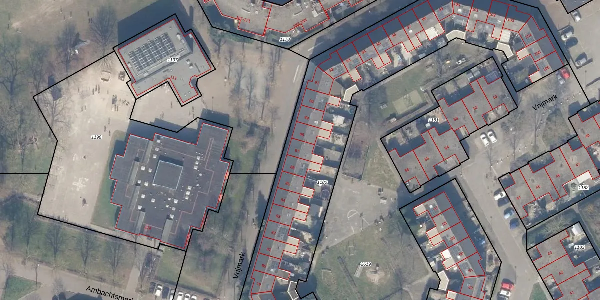 Het perceel waarop Vrijmark 87 staat heeft een oppervlakte van 5666 m². Dit is een zeer groot perceel. De perceeloppervlakte wordt geregistreerd door het Kadaster. Gedetailleerde informatie over de maten van dit perceel kunt u vinden in het rapport Kadastrale kaart met maatvoering van Vrijmark 87.