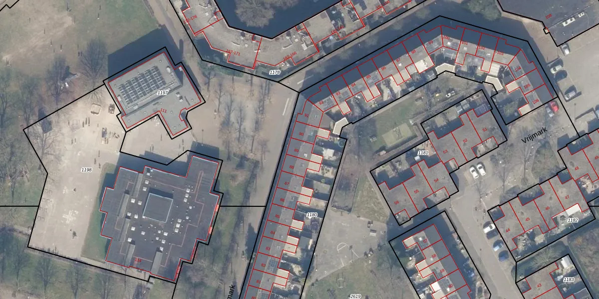 Het perceel waarop Vrijmark 89 staat heeft een oppervlakte van 5666 m². Dit is een zeer groot perceel. De perceeloppervlakte wordt geregistreerd door het Kadaster. Gedetailleerde informatie over de maten van dit perceel kunt u vinden in het rapport Kadastrale kaart met maatvoering van Vrijmark 89.