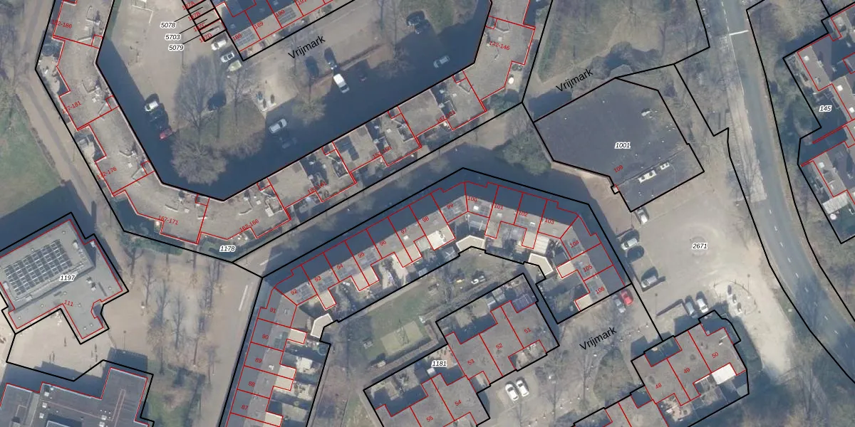 Het perceel waarop Vrijmark 98 staat heeft een oppervlakte van 5666 m². Dit is een zeer groot perceel. De perceeloppervlakte wordt geregistreerd door het Kadaster. Gedetailleerde informatie over de maten van dit perceel kunt u vinden in het rapport Kadastrale kaart met maatvoering van Vrijmark 98.