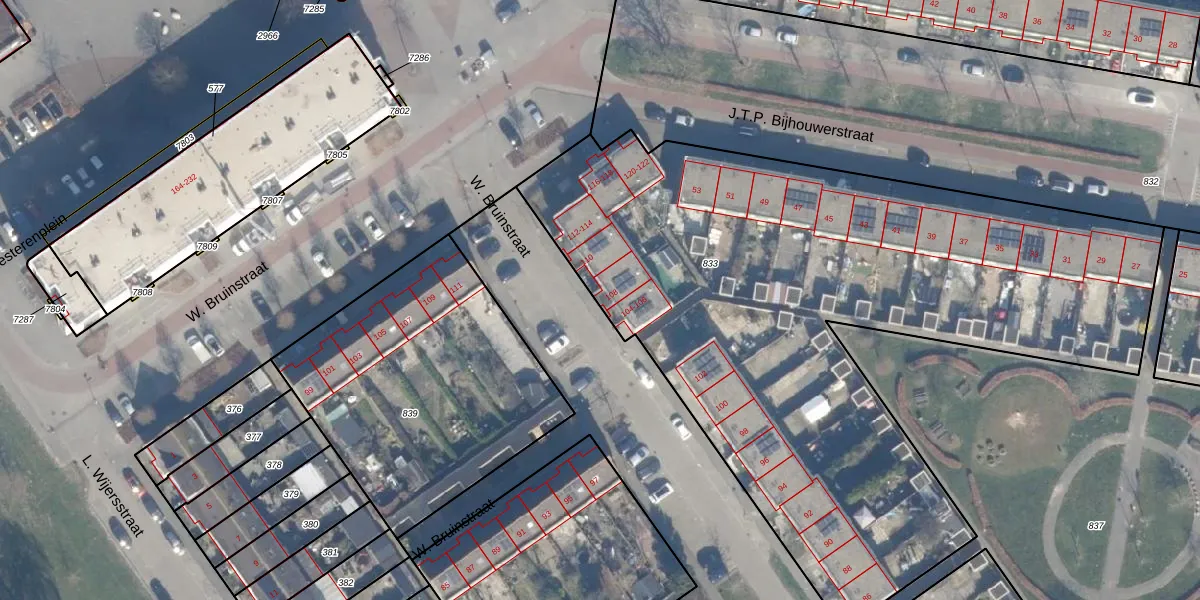 Het perceel waarop W. Bruinstraat 108 staat heeft een oppervlakte van 4110 m². Dit is een zeer groot perceel. De perceeloppervlakte wordt geregistreerd door het Kadaster. Gedetailleerde informatie over de maten van dit perceel kunt u vinden in het rapport Kadastrale kaart met maatvoering van W. Bruinstraat 108.