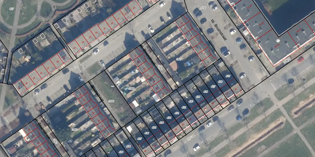Het perceel waarop W. Bruinstraat 19 staat heeft een oppervlakte van 1019 m². Dit is een zeer groot perceel. De perceeloppervlakte wordt geregistreerd door het Kadaster. Gedetailleerde informatie over de maten van dit perceel kunt u vinden in het rapport Kadastrale kaart met maatvoering van W. Bruinstraat 19.