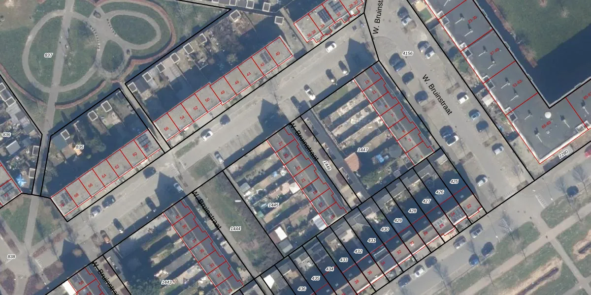 Het perceel waarop W. Bruinstraat 25 staat heeft een oppervlakte van 1019 m². Dit is een zeer groot perceel. De perceeloppervlakte wordt geregistreerd door het Kadaster. Gedetailleerde informatie over de maten van dit perceel kunt u vinden in het rapport Kadastrale kaart met maatvoering van W. Bruinstraat 25.