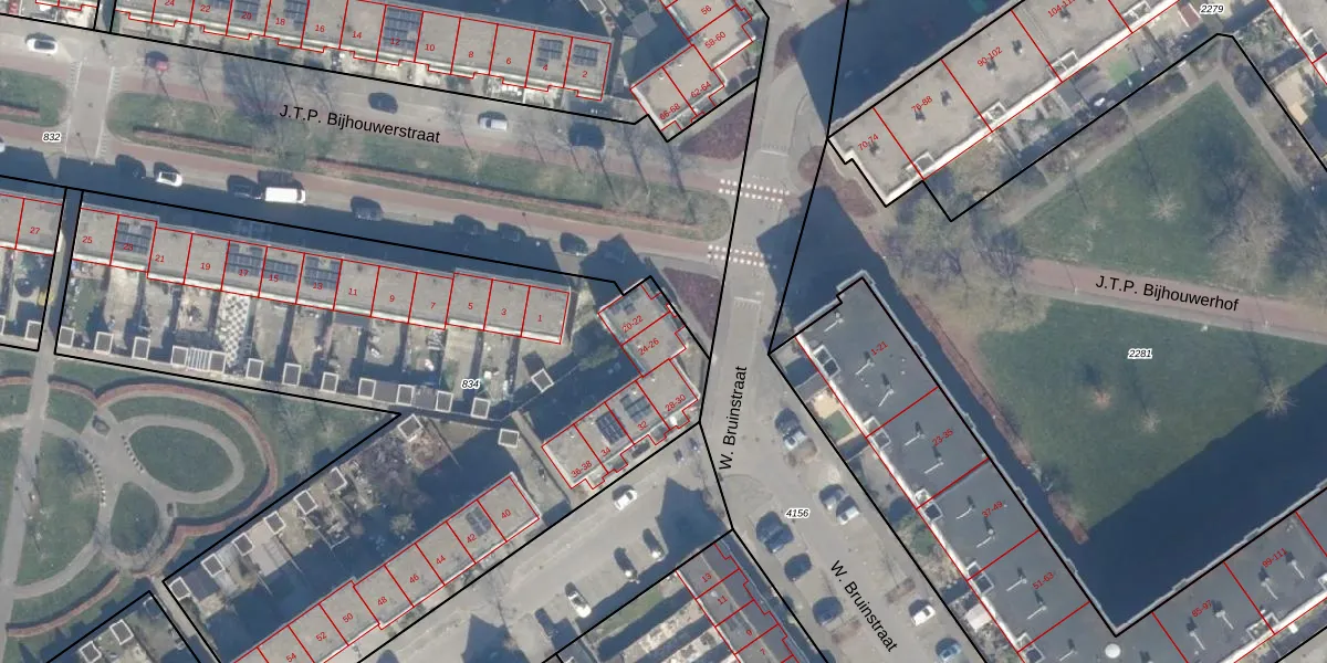 Het perceel waarop W. Bruinstraat 26 staat heeft een oppervlakte van 3931 m². Dit is een zeer groot perceel. De perceeloppervlakte wordt geregistreerd door het Kadaster. Gedetailleerde informatie over de maten van dit perceel kunt u vinden in het rapport Kadastrale kaart met maatvoering van W. Bruinstraat 26.