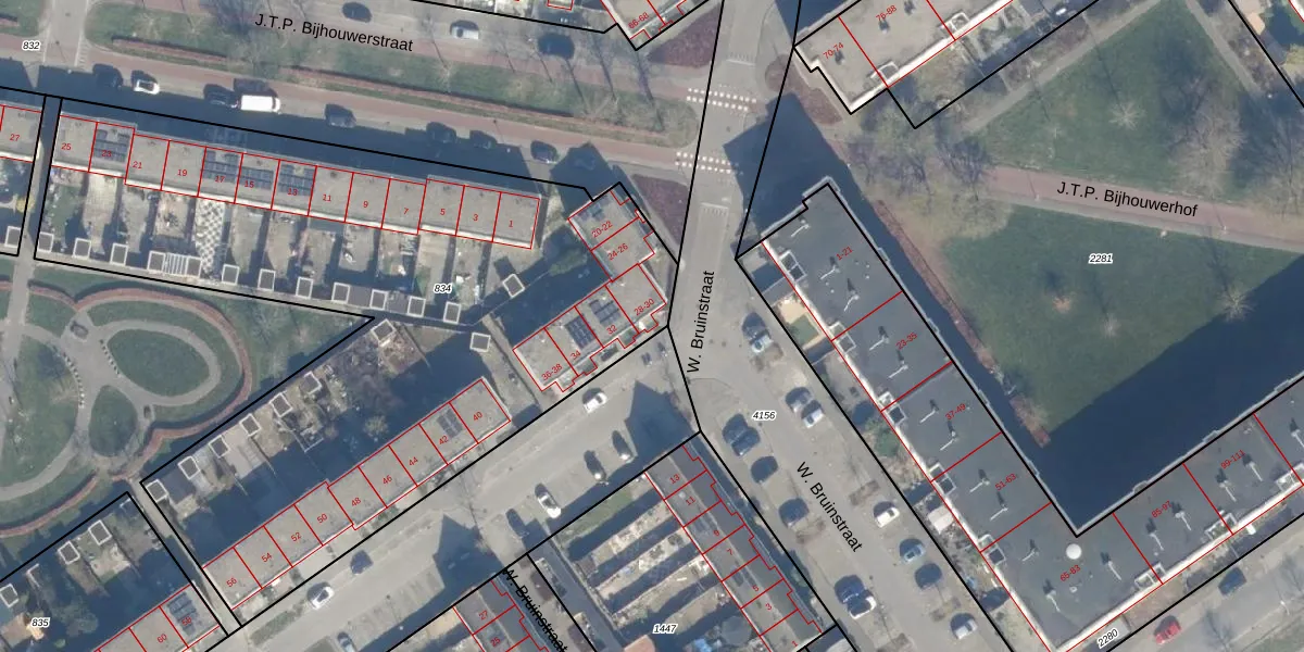 Het perceel waarop W. Bruinstraat 28 staat heeft een oppervlakte van 3931 m². Dit is een zeer groot perceel. De perceeloppervlakte wordt geregistreerd door het Kadaster. Gedetailleerde informatie over de maten van dit perceel kunt u vinden in het rapport Kadastrale kaart met maatvoering van W. Bruinstraat 28.