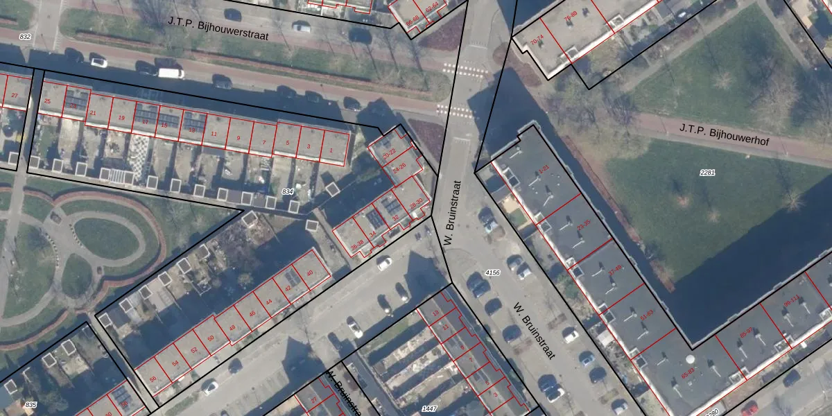 Het perceel waarop W. Bruinstraat 30 staat heeft een oppervlakte van 3931 m². Dit is een zeer groot perceel. De perceeloppervlakte wordt geregistreerd door het Kadaster. Gedetailleerde informatie over de maten van dit perceel kunt u vinden in het rapport Kadastrale kaart met maatvoering van W. Bruinstraat 30.