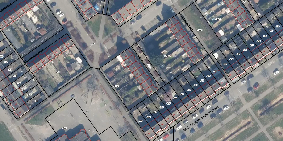 Het perceel waarop W. Bruinstraat 49 staat heeft een oppervlakte van 1015 m². Dit is een zeer groot perceel. De perceeloppervlakte wordt geregistreerd door het Kadaster. Gedetailleerde informatie over de maten van dit perceel kunt u vinden in het rapport Kadastrale kaart met maatvoering van W. Bruinstraat 49.