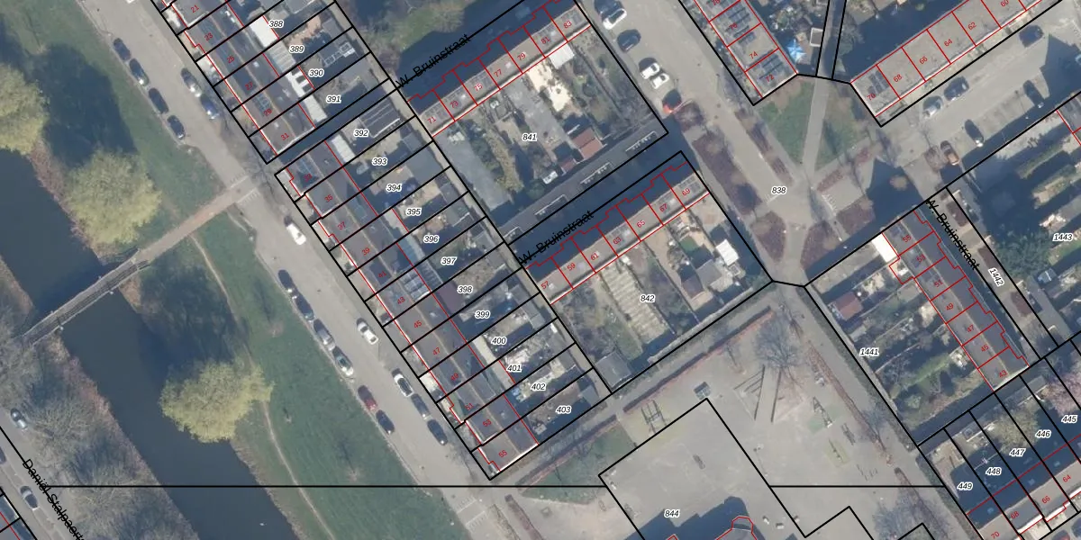 Het perceel waarop W. Bruinstraat 57 staat heeft een oppervlakte van 1069 m². Dit is een zeer groot perceel. De perceeloppervlakte wordt geregistreerd door het Kadaster. Gedetailleerde informatie over de maten van dit perceel kunt u vinden in het rapport Kadastrale kaart met maatvoering van W. Bruinstraat 57.