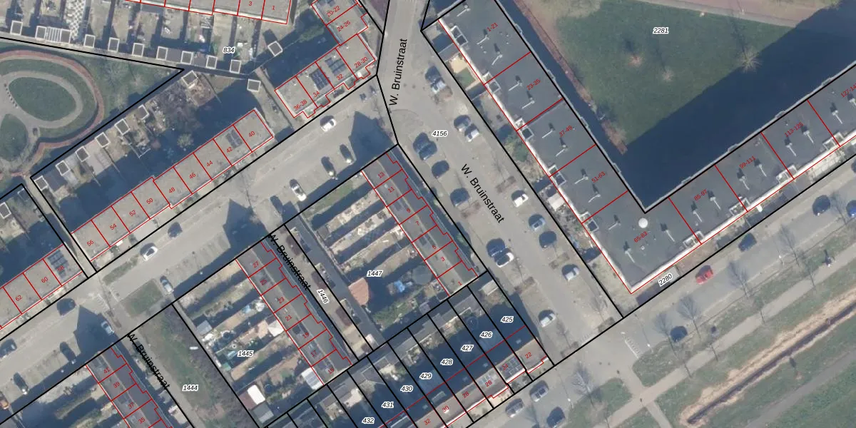 W. Bruinstraat 7 is gelegen op kadastraal perceel AMR04N1447. Deze kadastrale aanduiding is uniek en wordt gebruikt door het Kadaster om eigendomsrechten en andere zakelijke rechten vast te leggen. Het perceel maakt onderdeel uit van de kadastrale gemeente Almere.