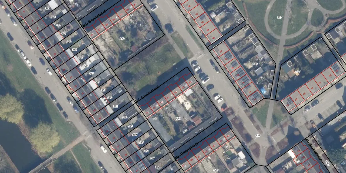 Het perceel waarop W. Bruinstraat 79 staat heeft een oppervlakte van 1290 m². Dit is een zeer groot perceel. De perceeloppervlakte wordt geregistreerd door het Kadaster. Gedetailleerde informatie over de maten van dit perceel kunt u vinden in het rapport Kadastrale kaart met maatvoering van W. Bruinstraat 79.