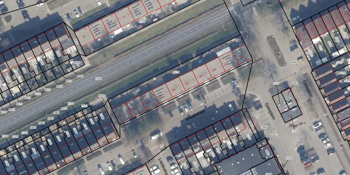 Het perceel waarop Waalstraat 199 staat heeft een oppervlakte van 1351 m². Dit is een zeer groot perceel. De perceeloppervlakte wordt geregistreerd door het Kadaster. Gedetailleerde informatie over de maten van dit perceel kunt u vinden in het rapport Kadastrale kaart met maatvoering van Waalstraat 199.