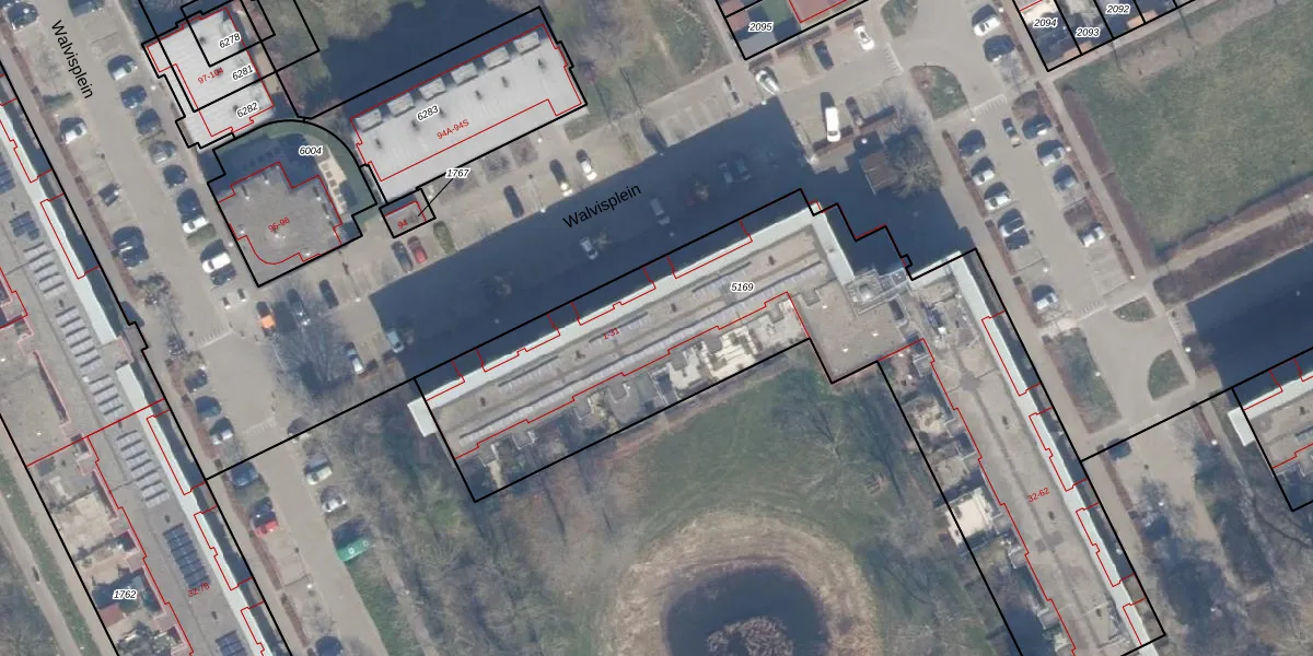 Het perceel waarop Walvisplein 12 staat heeft een oppervlakte van 2924 m². Dit is een zeer groot perceel. De perceeloppervlakte wordt geregistreerd door het Kadaster. Gedetailleerde informatie over de maten van dit perceel kunt u vinden in het rapport Kadastrale kaart met maatvoering van Walvisplein 12.