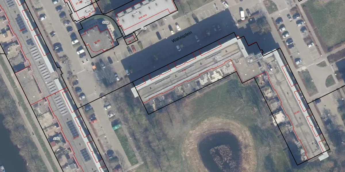 Het perceel waarop Walvisplein 22 staat heeft een oppervlakte van 2924 m². Dit is een zeer groot perceel. De perceeloppervlakte wordt geregistreerd door het Kadaster. Gedetailleerde informatie over de maten van dit perceel kunt u vinden in het rapport Kadastrale kaart met maatvoering van Walvisplein 22.