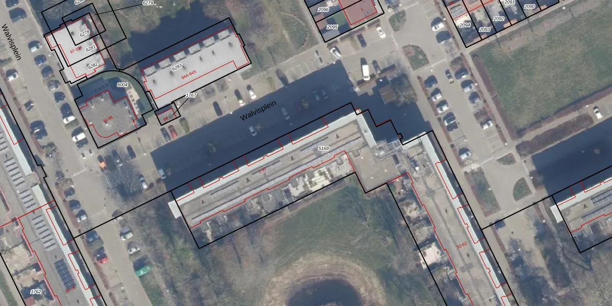 Het perceel waarop Walvisplein 26 staat heeft een oppervlakte van 2924 m². Dit is een zeer groot perceel. De perceeloppervlakte wordt geregistreerd door het Kadaster. Gedetailleerde informatie over de maten van dit perceel kunt u vinden in het rapport Kadastrale kaart met maatvoering van Walvisplein 26.