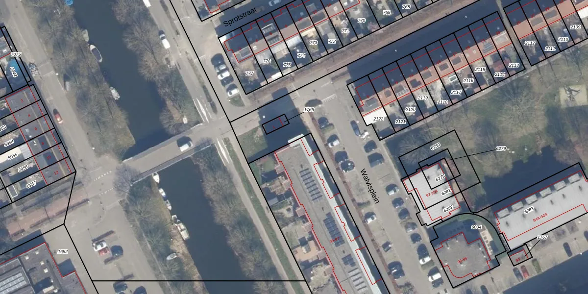 Het perceel waarop Walvisplein 54 staat heeft een oppervlakte van 3197 m². Dit is een zeer groot perceel. De perceeloppervlakte wordt geregistreerd door het Kadaster. Gedetailleerde informatie over de maten van dit perceel kunt u vinden in het rapport Kadastrale kaart met maatvoering van Walvisplein 54.