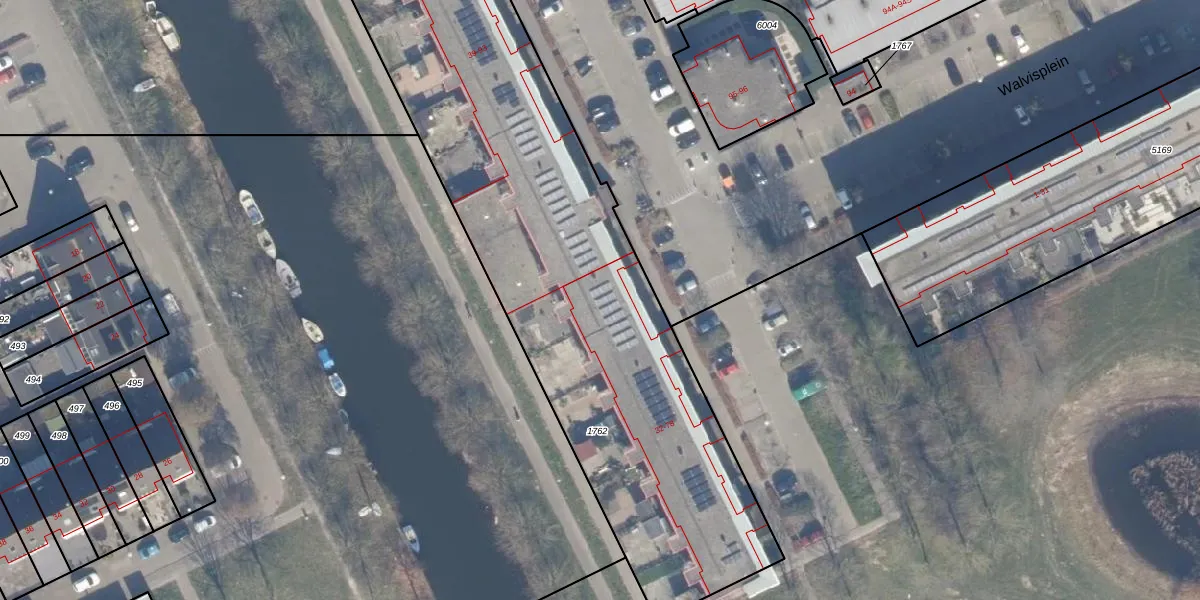 Het perceel waarop Walvisplein 56 staat heeft een oppervlakte van 3197 m². Dit is een zeer groot perceel. De perceeloppervlakte wordt geregistreerd door het Kadaster. Gedetailleerde informatie over de maten van dit perceel kunt u vinden in het rapport Kadastrale kaart met maatvoering van Walvisplein 56.