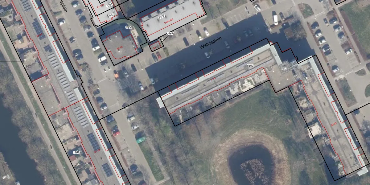 Het perceel waarop Walvisplein 7 staat heeft een oppervlakte van 2924 m². Dit is een zeer groot perceel. De perceeloppervlakte wordt geregistreerd door het Kadaster. Gedetailleerde informatie over de maten van dit perceel kunt u vinden in het rapport Kadastrale kaart met maatvoering van Walvisplein 7.