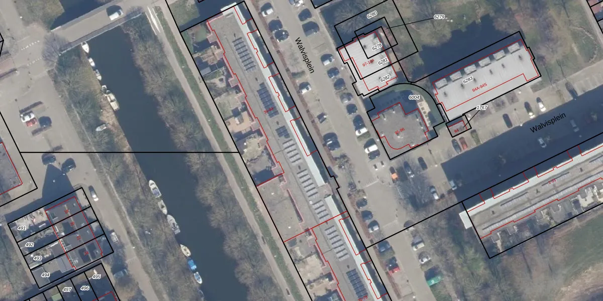 Het perceel waarop Walvisplein 87 staat heeft een oppervlakte van 3197 m². Dit is een zeer groot perceel. De perceeloppervlakte wordt geregistreerd door het Kadaster. Gedetailleerde informatie over de maten van dit perceel kunt u vinden in het rapport Kadastrale kaart met maatvoering van Walvisplein 87.