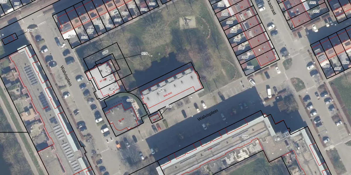 Het perceel waarop Walvisplein 94-G staat heeft een oppervlakte van 593 m². Dit is een groot perceel. De perceeloppervlakte wordt geregistreerd door het Kadaster. Gedetailleerde informatie over de maten van dit perceel kunt u vinden in het rapport Kadastrale kaart met maatvoering van Walvisplein 94-G.