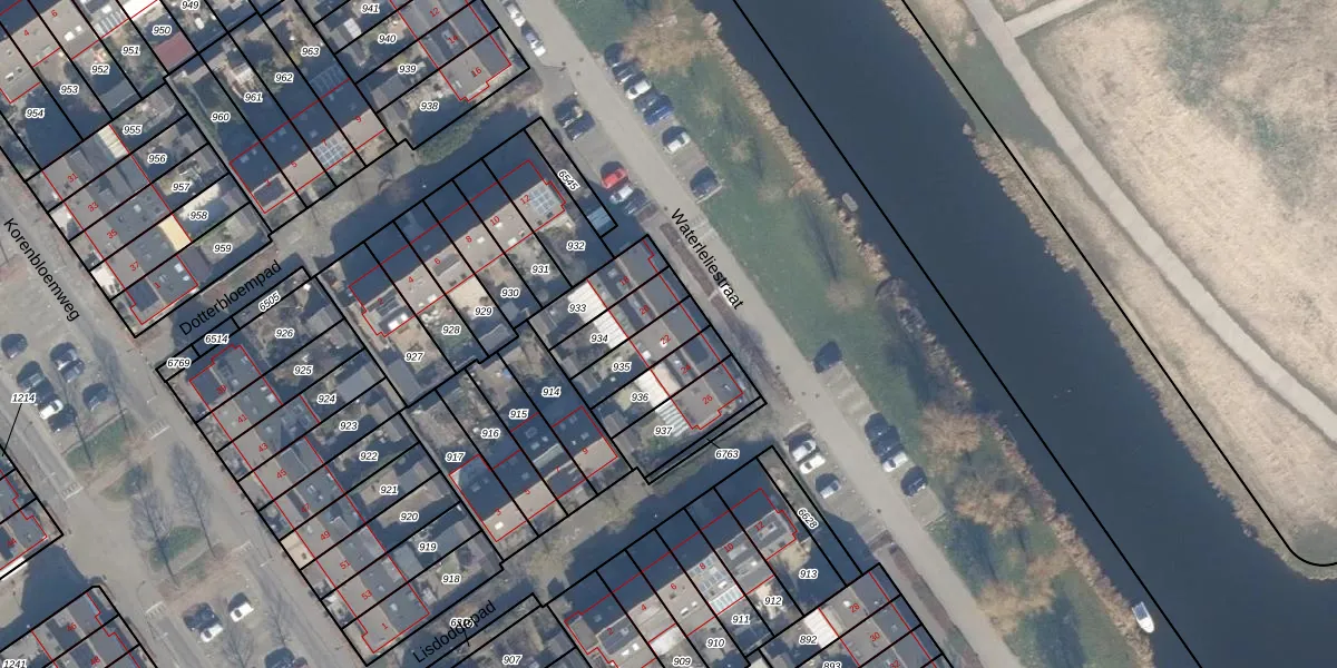 Waterleliestraat 22 is gelegen op kadastraal perceel AMR04N935. Deze kadastrale aanduiding is uniek en wordt gebruikt door het Kadaster om eigendomsrechten en andere zakelijke rechten vast te leggen. Het perceel maakt onderdeel uit van de kadastrale gemeente Almere.