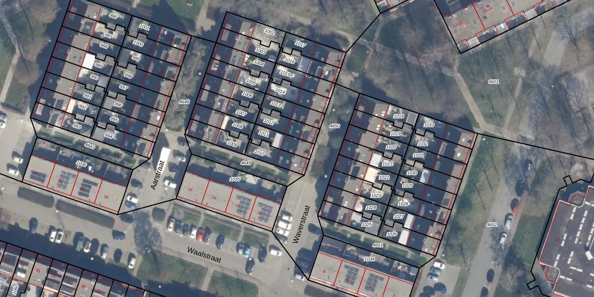 Gebruik de zoekbalk of klik op een perceel voor informatie over de adressen binnen dit perceel.
