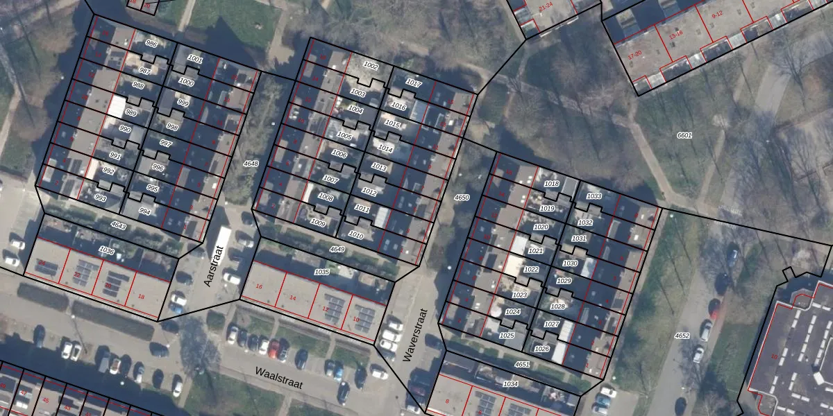 Gebruik de zoekbalk of klik op een perceel voor informatie over de adressen binnen dit perceel.