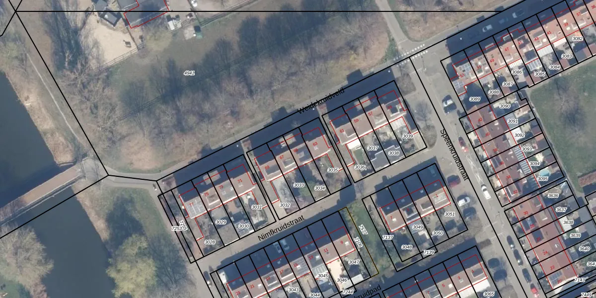 Het perceel waarop Weidekruidveld 65 staat heeft een oppervlakte van 144 m². Dit is een middelgroot perceel. De perceeloppervlakte wordt geregistreerd door het Kadaster. Gedetailleerde informatie over de maten van dit perceel kunt u vinden in het rapport Kadastrale kaart met maatvoering van Weidekruidveld 65.