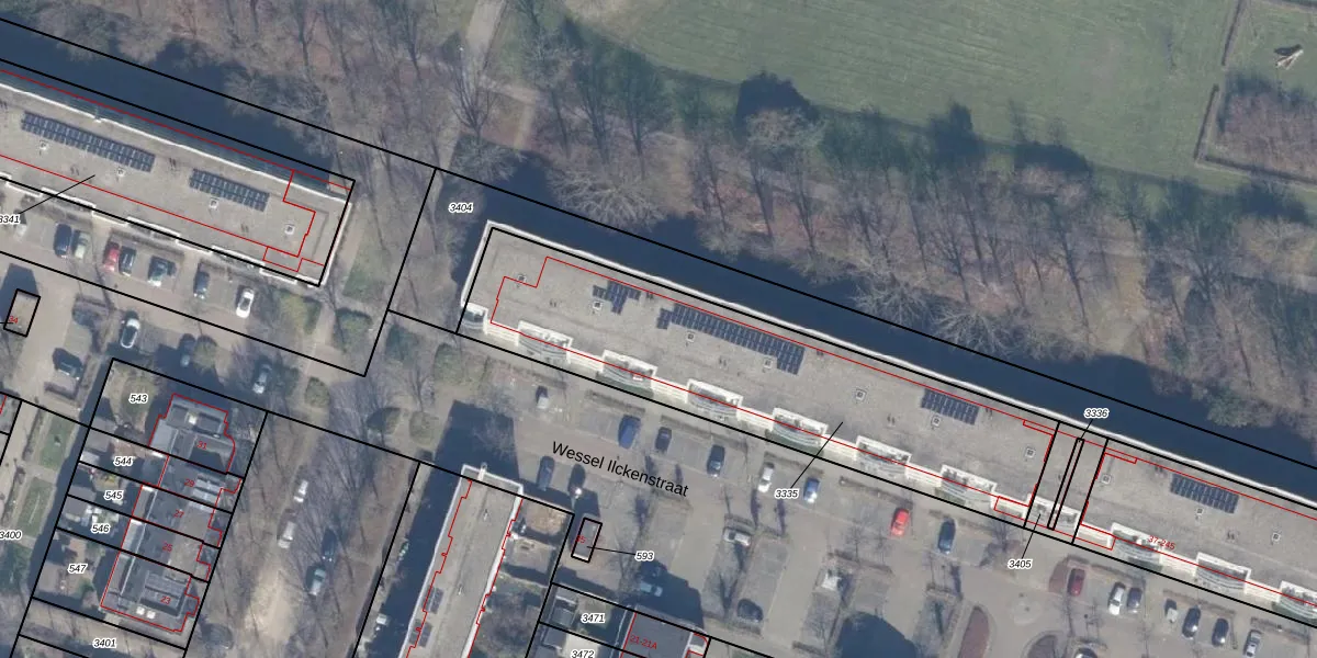 Het perceel waarop Wessel Ilckenstraat 65 staat heeft een oppervlakte van 1552 m². Dit is een zeer groot perceel. De perceeloppervlakte wordt geregistreerd door het Kadaster. Gedetailleerde informatie over de maten van dit perceel kunt u vinden in het rapport Kadastrale kaart met maatvoering van Wessel Ilckenstraat 65.