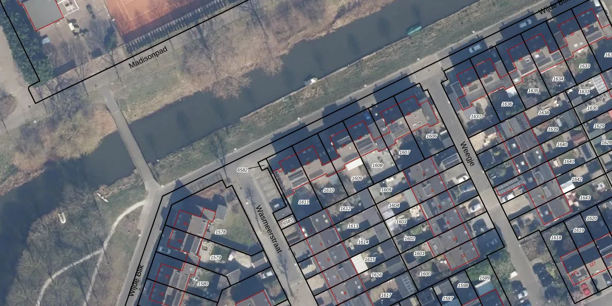 Het perceel waarop Wijde Blik 32 staat heeft een oppervlakte van 214 m². Dit is een middelgroot perceel. De perceeloppervlakte wordt geregistreerd door het Kadaster. Gedetailleerde informatie over de maten van dit perceel kunt u vinden in het rapport Kadastrale kaart met maatvoering van Wijde Blik 32.