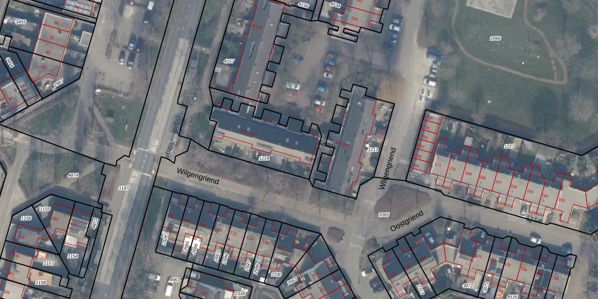 Het perceel waarop Wilgengriend 112 staat heeft een oppervlakte van 619 m². Dit is een groot perceel. De perceeloppervlakte wordt geregistreerd door het Kadaster. Gedetailleerde informatie over de maten van dit perceel kunt u vinden in het rapport Kadastrale kaart met maatvoering van Wilgengriend 112.
