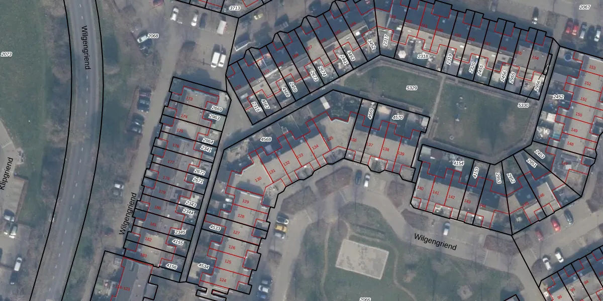Wilgengriend 133 is gelegen op kadastraal perceel AMR04H4568. Deze kadastrale aanduiding is uniek en wordt gebruikt door het Kadaster om eigendomsrechten en andere zakelijke rechten vast te leggen. Het perceel maakt onderdeel uit van de kadastrale gemeente Almere.