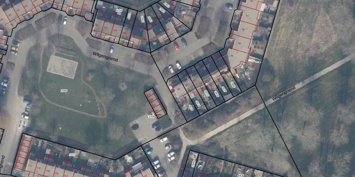 Het perceel waarop Wilgengriend 96 staat heeft een oppervlakte van 209 m². Dit is een middelgroot perceel. De perceeloppervlakte wordt geregistreerd door het Kadaster. Gedetailleerde informatie over de maten van dit perceel kunt u vinden in het rapport Kadastrale kaart met maatvoering van Wilgengriend 96.