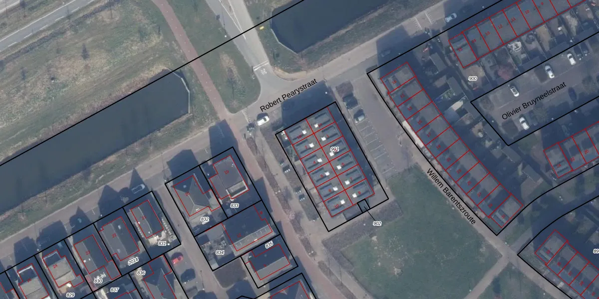 Het perceel waarop Willem Barentszroute 2 staat heeft een oppervlakte van 833 m². Dit is een groot perceel. De perceeloppervlakte wordt geregistreerd door het Kadaster. Gedetailleerde informatie over de maten van dit perceel kunt u vinden in het rapport Kadastrale kaart met maatvoering van Willem Barentszroute 2.